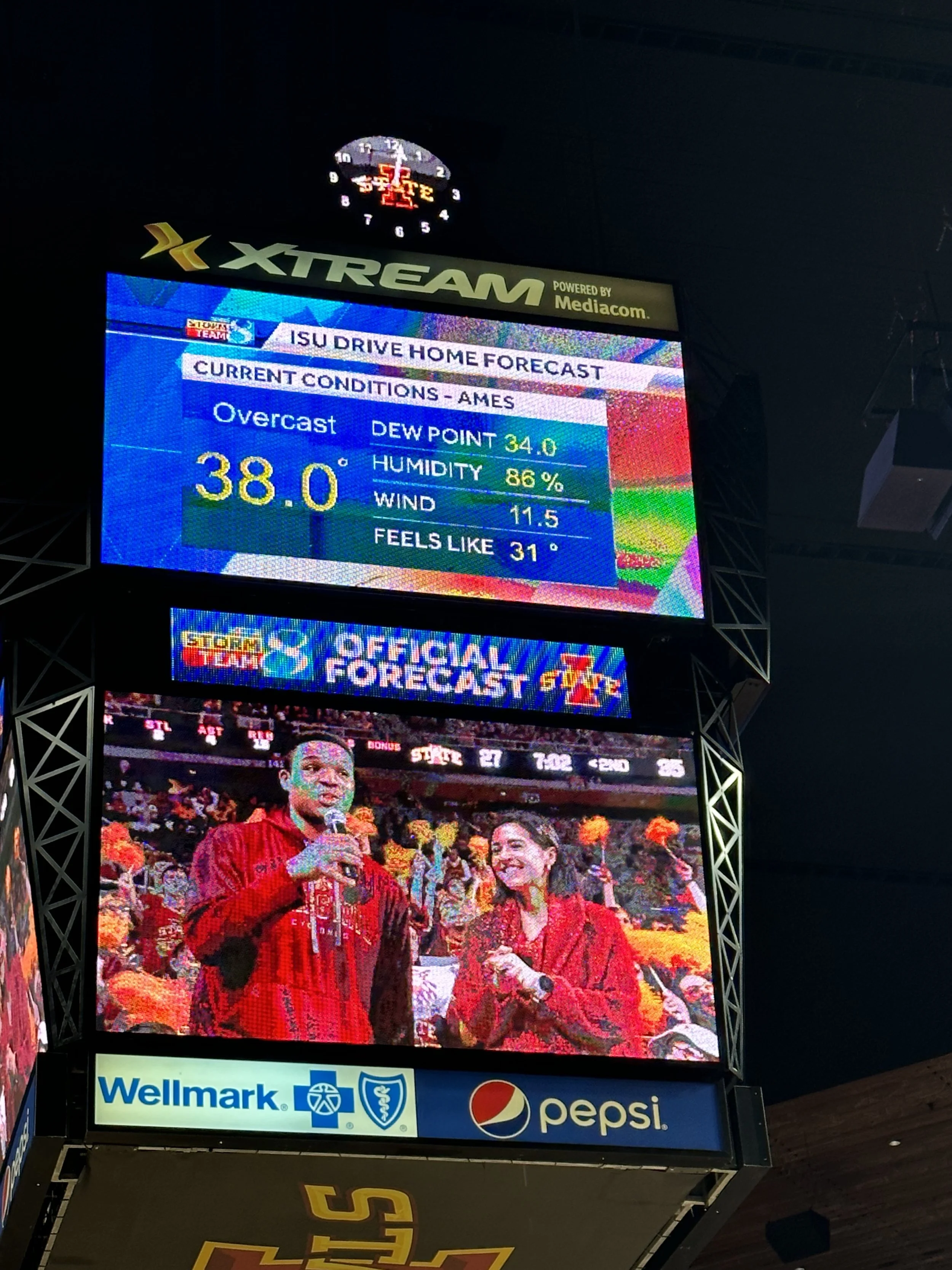 KCCI takes advantage of ‘Hilton Magic’ by focusing the audience on our weather forecast. This gives people in the arena a valuable tool for planning the days ahead and gives our weather brand exposure with the loyal and engaged Iowa State faithful.